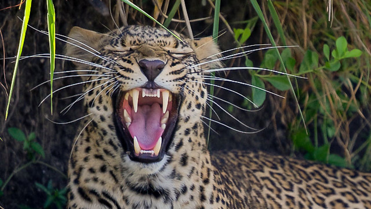 In reality, the massive mammal was at the end of a yawn, Sowerby pointed out. "We spent about an hour watching the leopard from a safe distance, and as it got used to us being there, it got more relaxed," Sowerby added.