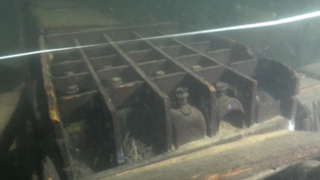 Glass bottles were discovered on the wreck. (Photo courtesy of the Central Information Center of the Russian Geographical Society)