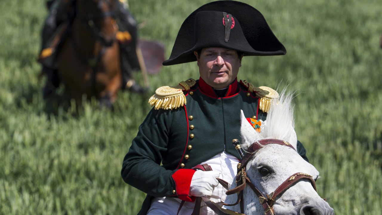 Frenchman Frank Samson takes part in the re-enactment of the battle of Ligny, as French Emperor Napoleon, during the bicentennial celebrations for the Battle of Waterloo, in Ligny, Belgium, June 14, 2015. (REUTERS/Yves Herman)