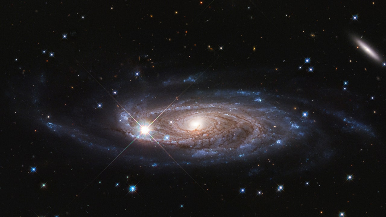 This Hubble Space Telescope photograph showcases the majestic spiral galaxy UGC 2885, located 232 million light-years away in the northern constellation Perseus. The galaxy is 2.5 times wider than our Milky Way and contains 10 times as many stars. A number of foreground stars in our Milky Way can be seen in the image, identified by their diffraction spikes. The brightest star photobombs the galaxy's disk. (Credit: NASA, ESA and B. Holwerda (University of Louisville))