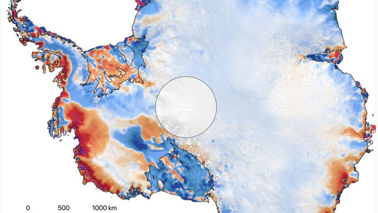 This shows the amount of ice gained or lost by Antarctica between 2003 and 2019. Dark reds and purples show large average rates of ice loss near the Antarctic coast, while blues show smaller rates of ice gain in the interior. The ice lost near the coasts, especially West Antarctica and the Antarctic Peninsula, vastly outweigh gains in the interior. (Smith et al./Science) (Smith et al./Science)