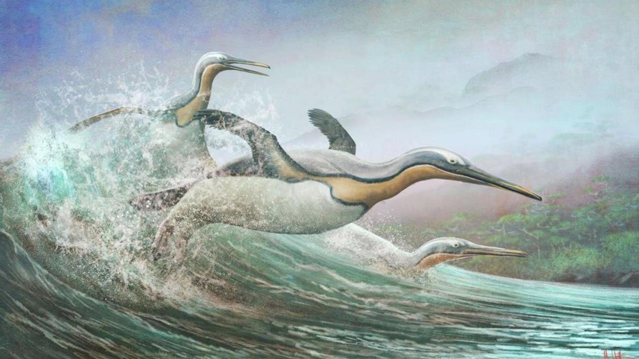 The giant penguins, like these Kumimanu, that lived in Aotearoa New Zealand around 60 million years ago bore a striking resemblance to some plotopterids. (Mark Witton)