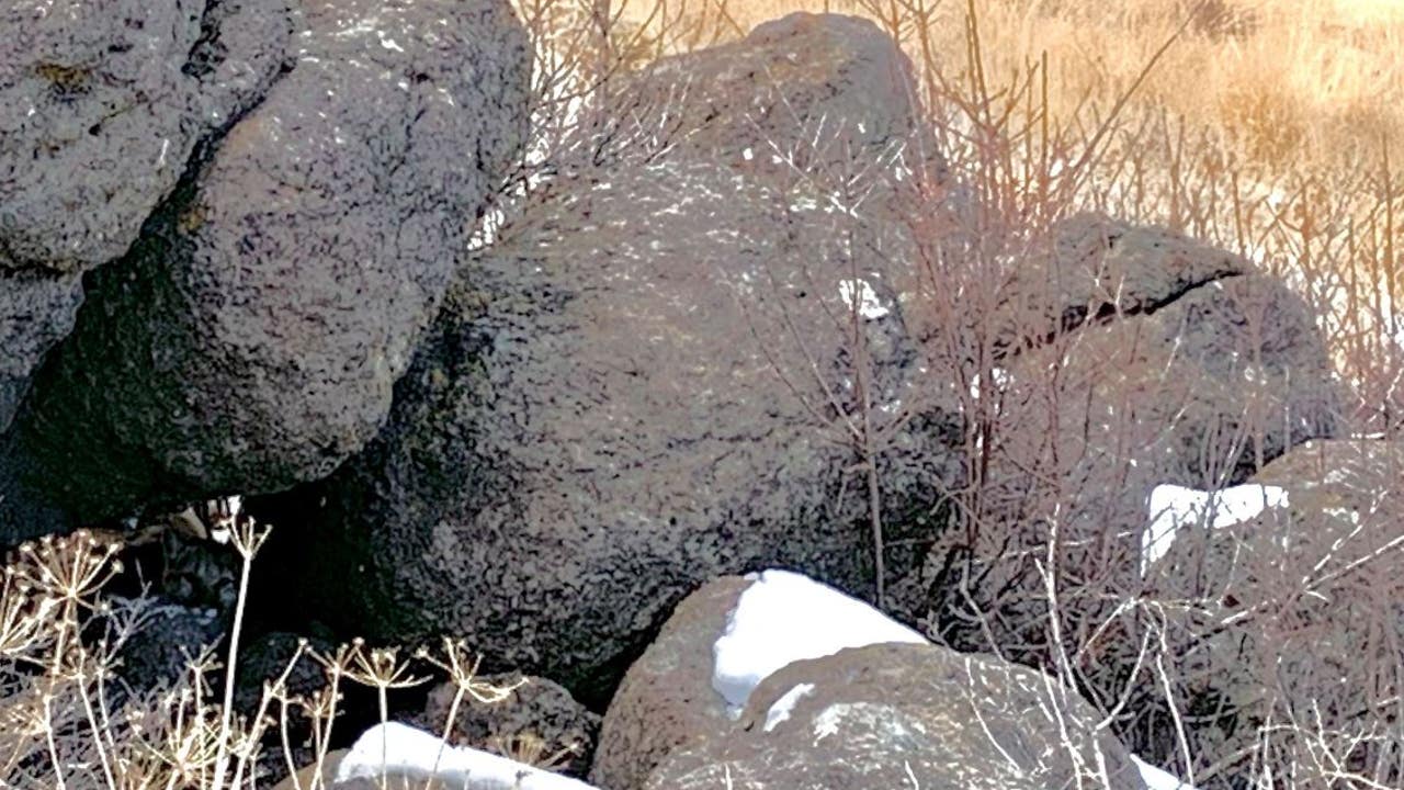 The big cat was well hidden because its fur was a similar color to the rocky terrain in the photo.