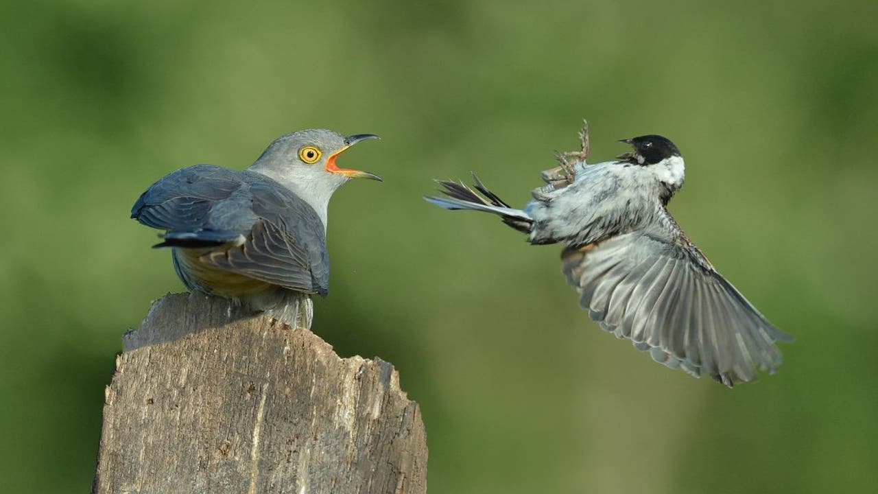 The cuckoos, which live on every continent except Antarctica, were spotted in rural North Yorkshire around 6 a.m. by Keith Bannister, British news agency SWNS reports. Bannister, a retired warehouse worker, was keen to get images of the birds because of how animated they become.