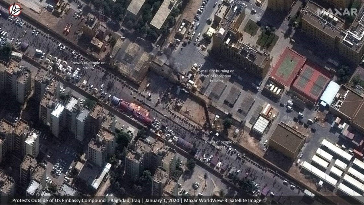 Satellite images show the recent protests in Baghdad that saw pro-Iran militiamen and their supporters attempt to storm the U.S. Embassy.