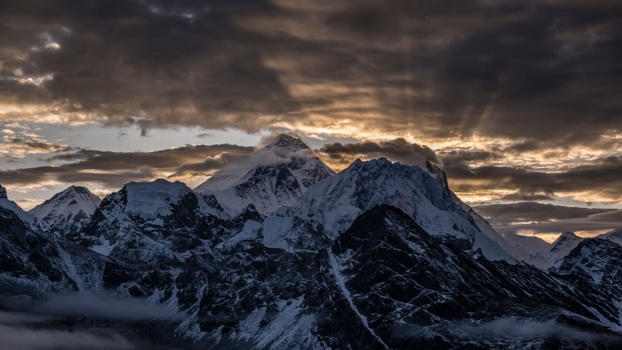 Summits of Mt. Everest and Mt. Makalu, seen from summit of Gokyo Ri, before sunrise in September 2019. (Photo by Frank Bienewald/LightRocket via Getty Images) (Getty Images)