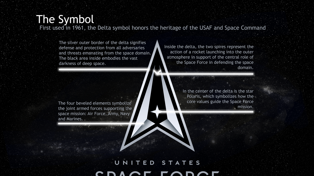 “The logo and motto honor the heritage and history of the U.S. Space Force,” the service branch said in the statement. The silver outer border of the Delta symbol signifies defense and protection from all adversaries and threats from the space domain, according to Space Force. "In the center of the Delta is the star Polaris," it adds, "which symbolizes how the core values guide the Space Force mission."