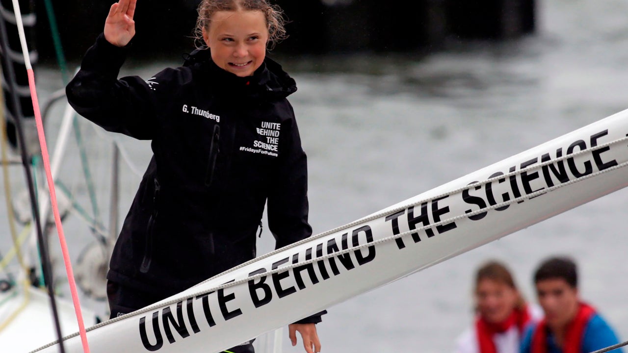 Swedish climate activist Greta Thunberg arrives in the U.S. after a 15-day journey crossing the Atlantic. (Getty Images)