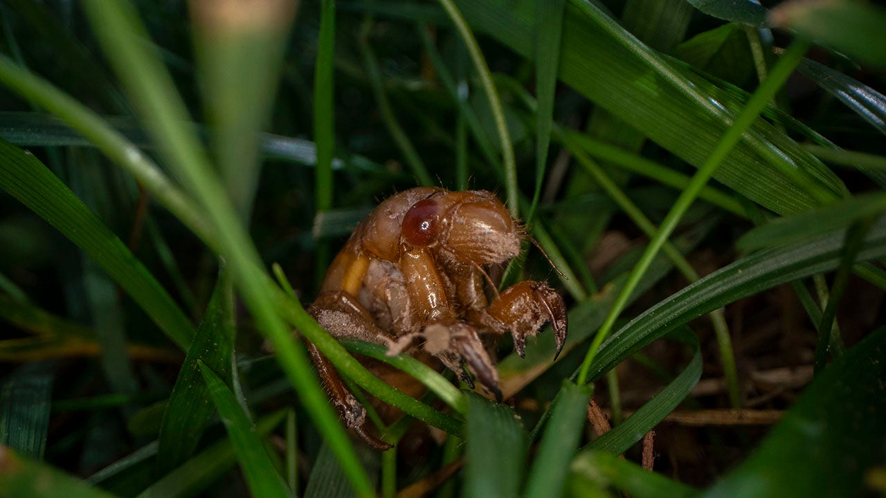 The cicadas will mostly come out at dusk to try to avoid everything that wants to eat them, squiggling out of holes in the ground. They’ll try to climb up trees or anything vertical, including Raupp and Shrewsbury. Once off the ground, they shed their skins and try to survive that vulnerable stage before they become dinner to a host of critters including ants, birds, dogs, cats and Raupp.