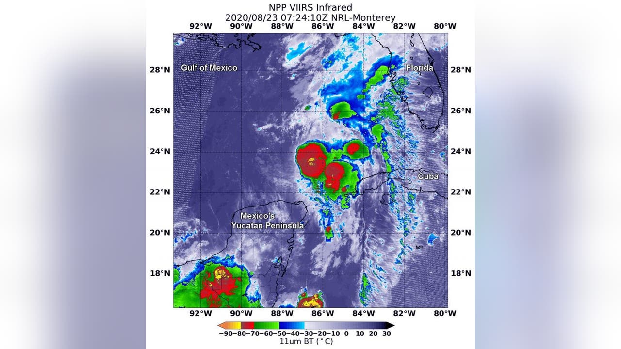The Suomi NPP satellite, which is operated by NASA and the National Oceanic and Atmospheric Administration (NOAA), passed over Tropical Storm Marco in the Southern Gulf of Mexico on Sunday. The satellite used its VIIRS (Visible Infrared Imaging Radiometer Suite) instrument to capture an image of the storm at 3:24 a.m. EDT.