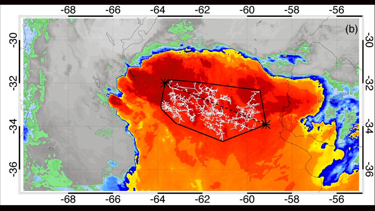 A satellite image showing the greatest duration of lightning flash in Argentina on March 4, 2019. (World Meteorological Organization (WMO))