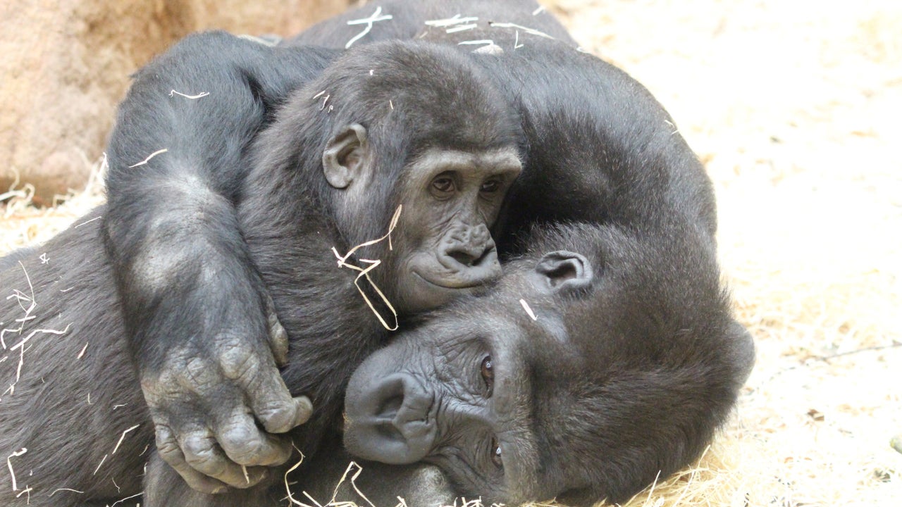 After they played around and wrestled for a bit, the primates shared a cuddle.