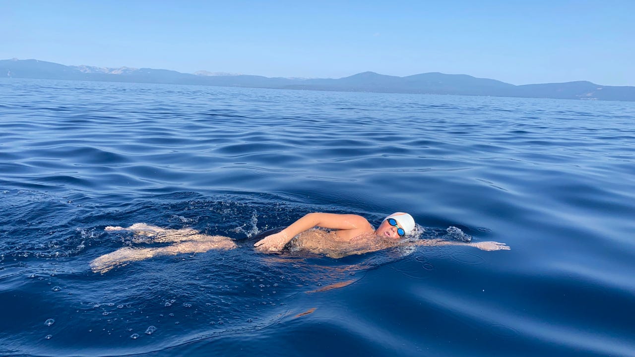 He also swam the 10-mile (16-kilometer) Vikingsholm route that traverses the southern portion of Lake Tahoe, known for its pine tree-lined beaches and ski resorts.