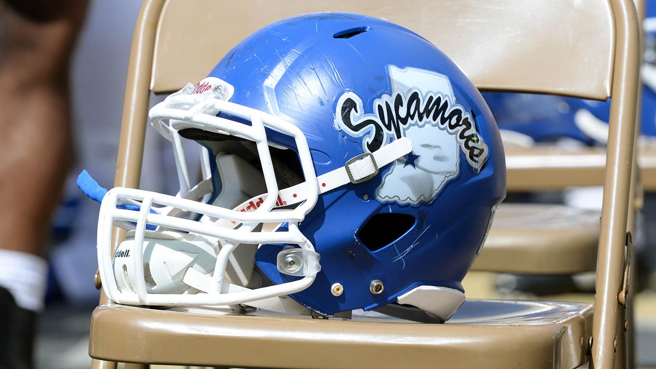 An Indiana State University Sycamores helmet sits on chair at Ross-Ade Stadium on the campus of Purdue University in West Lafayette, Indiana. (Michael Allio/Icon Sportswire/Corbis/Icon Sportswire via Getty Images)