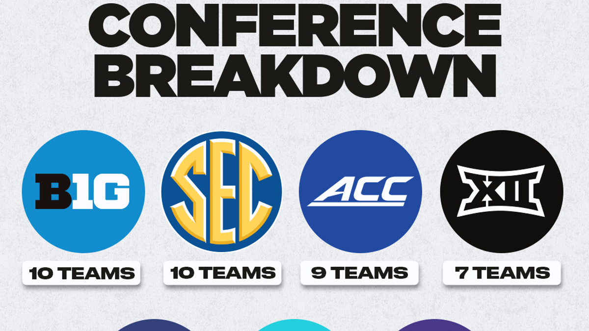 The Big Ten and SEC feature the greatest depth, with both projected to send 10 teams to the tournament, according to DeCourcy's projections. The Big Ten backs that up with five teams ranked in the top 13 of the AP Poll, while the SEC leans on balance, already boasting nine teams with at least 16 wins as of Feb. 10.