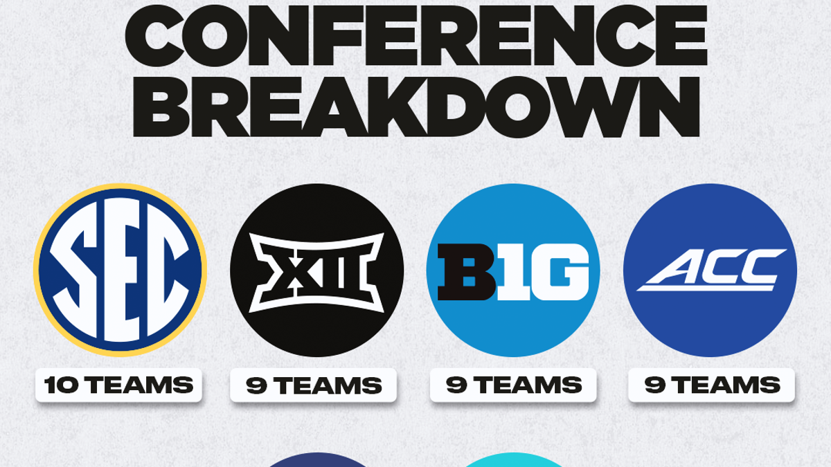 As for conference representation, the SEC leads the way with 10 teams in DeCourcy's third tournament projections, followed by the Big Ten, Big 12 and ACC with nine teams and the Big East with four teams. The West Coast Conference also has two teams.