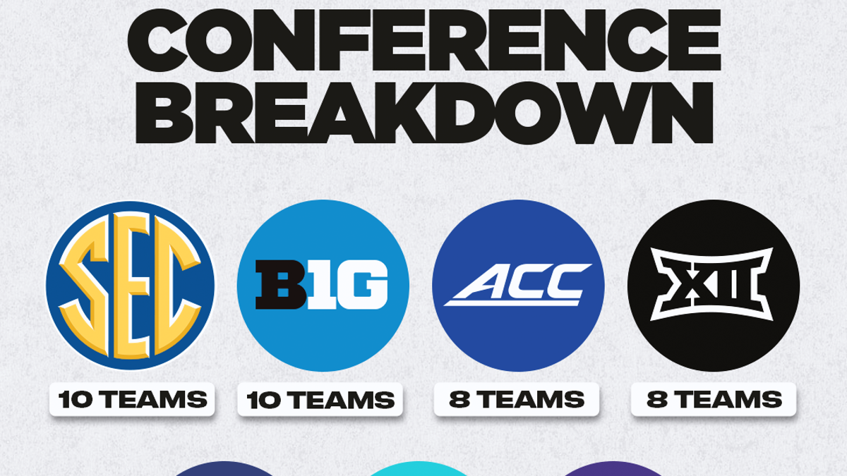 As for conference representation, the SEC and the Big Ten lead the way with 10 teams each, while the ACC and the Big 12 have eight teams in DeCourcy's latest tournament projections. The Big East and the West Coast have three teams represented, while the Mountain West has two teams.