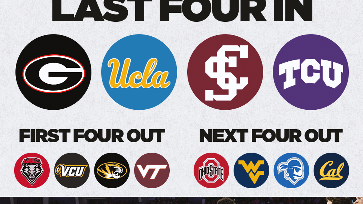 According to DeCourcy's projections, Georgia, UCLA, Santa Clara and TCU are the last four teams in the tournament, while New Mexico, VCU, Missouri and Virginia Tech are the first four out.