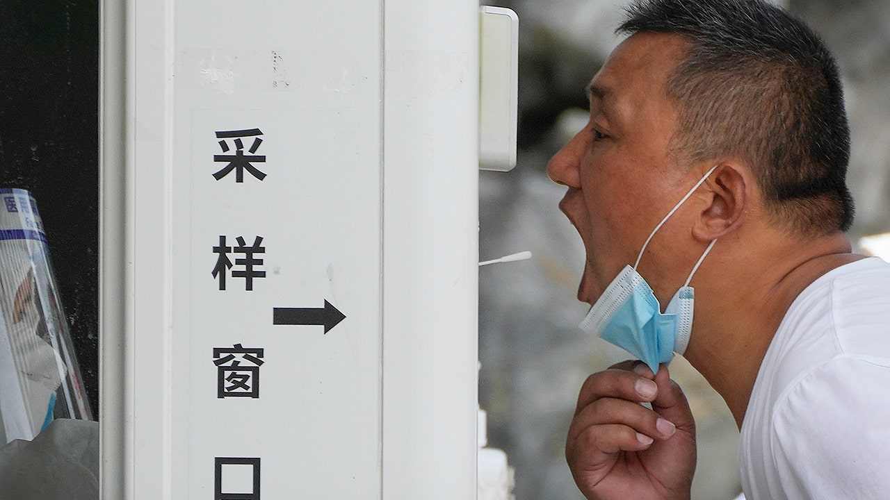 A man gets a throat swab at a testing site as people are required for a negative COVID test in the last 72 hours before entering some buildings and using public transportation in Beijing, Tuesday, July 19, 2022. (AP Photo/Andy Wong)