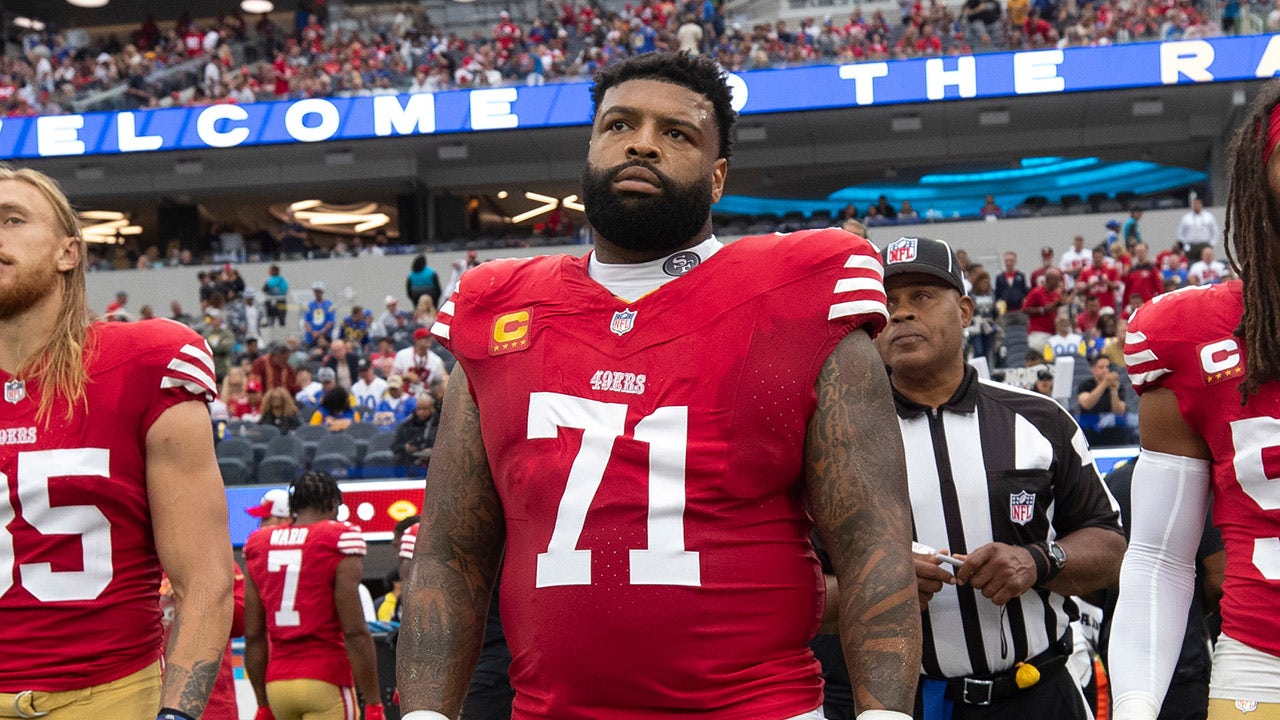 Trent Williams #71 of the San Francisco 49ers on the field before the NFC Wild Card playoff game against the Seattle Seahawks at Levi's Stadium on January 14, 2023 in Santa Clara, California. The 49ers defeated the Seahawks 41-23. (Michael Zagaris/San Francisco 49ers/Getty Images)