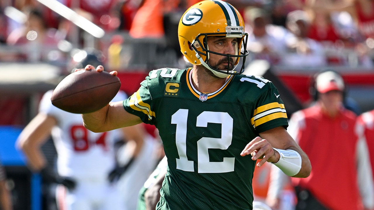 The Green Bay Packers' Aaron Rodgers throws during the first half of a game against the Tampa Bay Buccaneers Sept. 25, 2022, in Tampa, Fla. (AP Photo/Jason Behnken)