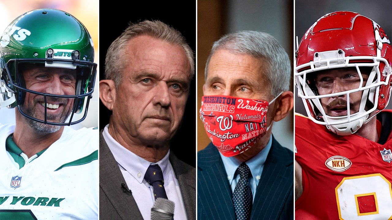 Aaron Rodgers, Robert F. Kennedy, Jr., Anthony Fauci and Travis Kelce (Getty Images)