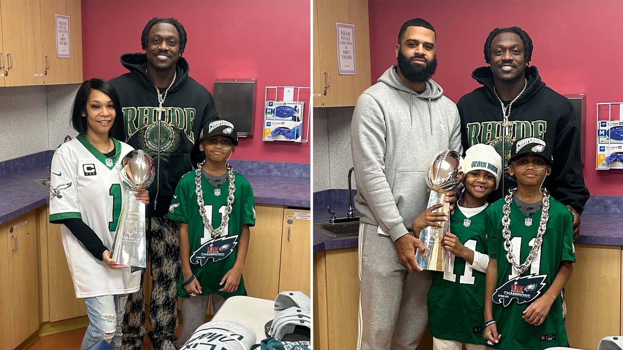 Brown visited the Children’s Hospital of Philadelphia on Wednesday with the Lombardi Trophy in hand to visit with 10-year-old Andre Howard III, who heroically protected his sister from debris after a medical transport plane crashed in Philadelphia late last month.