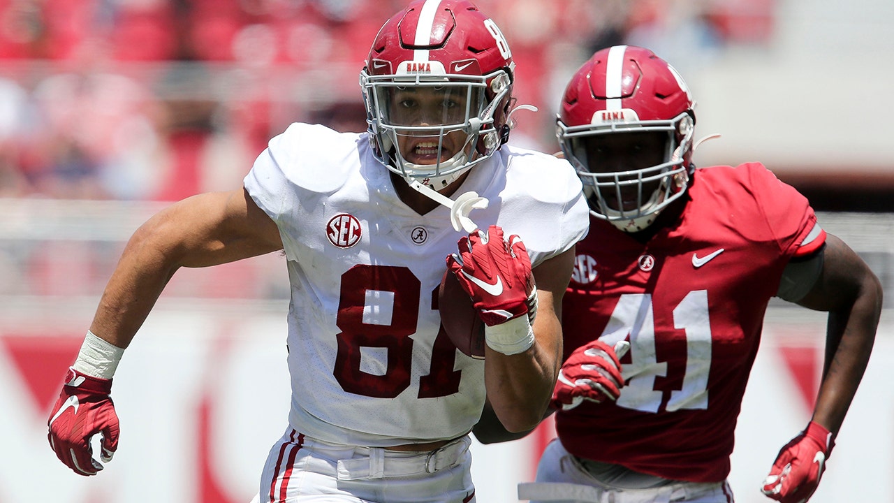 Latu emerged in spring practice as a redshirt junior this season. The 6-foot-5, 250-pound tight end dominated scrimmages and recorded a 59-yard touchdown reception from Bryce Young in the A-Day game.