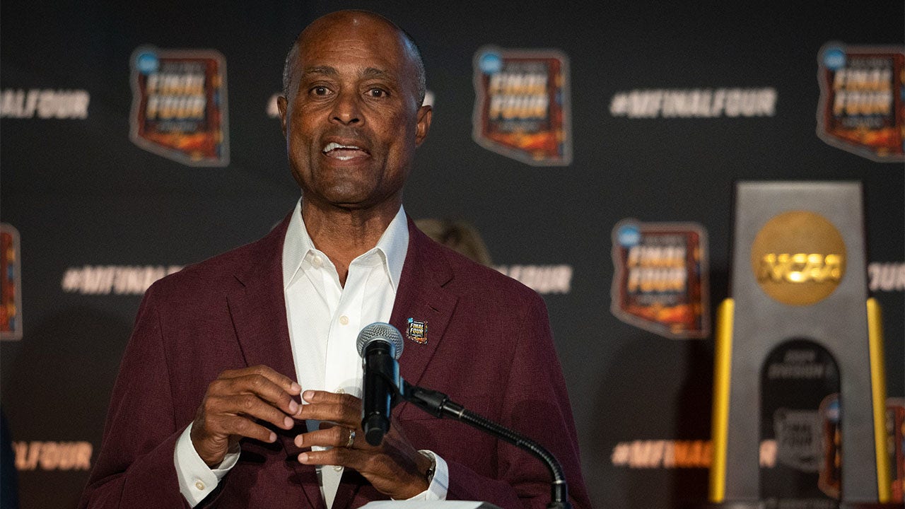 Ray Anderson, ASU vice president for university athletics, speaks during the unveiling of the Final Four countdown clock on April 20, 2023, at Phoenix Sky Harbor International Airport.