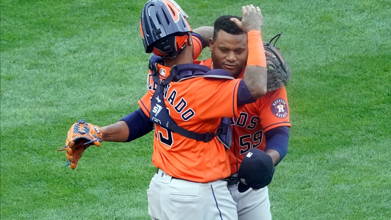 Framber Valdez, who made 10 regular-season starts for the Astros, pitched five scoreless innings in relief of Zack Greinke for the victory to keep the bullpen fresh for the rest of the series. Valdez allowed his only two hits with one out in the ninth, but Willians Astudillo grounded into a double play to end the game.