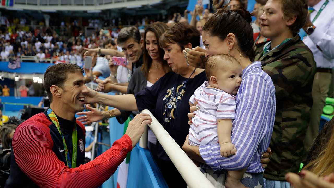 Michael Phelps reached for his mother’s hand through a chainlink fence near the pool. The 19-year-old swimmer had just won his first Olympic medal — gold, of course — at the 2004 Athens Games, and he wanted to share it with the woman who raised him on her own.