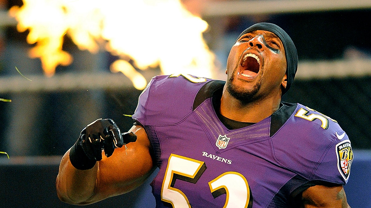 Ray Lewis, a two-time Super Bowl champion with the Ravens, might be the best middle linebacker the NFL has ever seen. (Photo by Rob Tringali/SportsChrome/Getty Images)