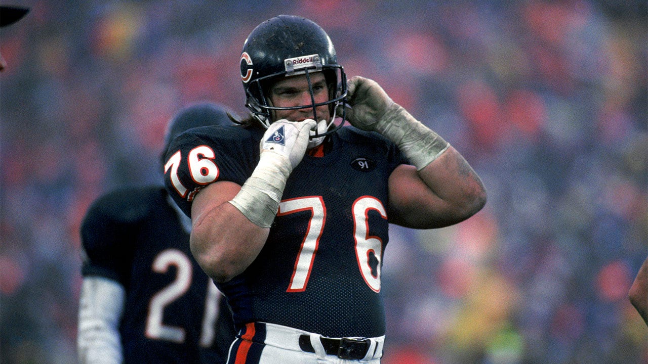 Steve McMichael of the Chicago Bears removes his helmet during a game against the Kansas City Chiefs Dec. 30, 1990, in Chicago. (Jonathan Daniel/Getty Images)
