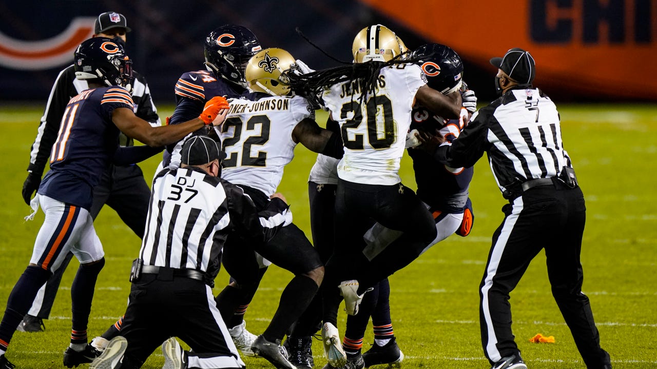 BEARS-SAINTS PLAYERS FIGHT IN MIDDLE OF TIGHT GAME