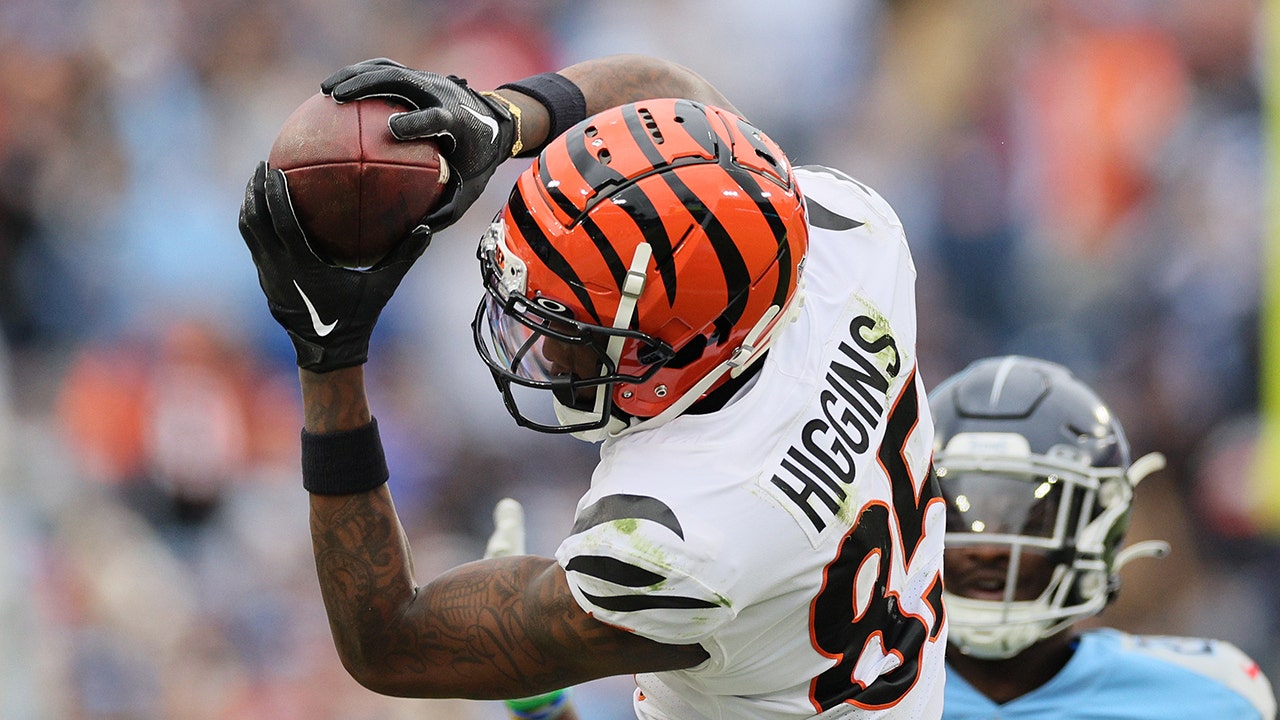 Tee Higgins #85 of the Cincinnati Bengals against the Tennessee Titans at Nissan Stadium on November 27, 2022 in Nashville, Tennessee. (Andy Lyons/Getty Images)