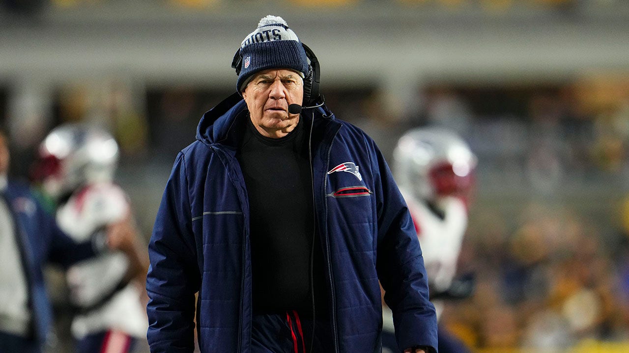 New England Patriots head coach Bill Belichick looks on from the sideline during an NFL football game against the Pittsburgh Steelers at Acrisure Stadium on December 7, 2023 in Pittsburgh, Pennsylvania. (Cooper Neill/Getty Images)