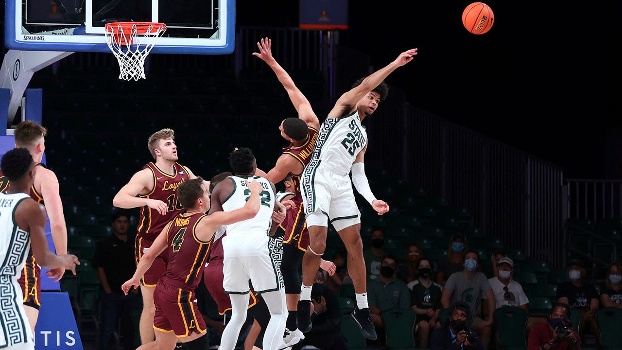 The Spartans (4-1) advanced to Thursday’s semifinals to face the winner between No. 19 Auburn and No. 22 Connecticut, while the Ramblers (4-1) will face the loser of that game in the consolation bracket on Thanksgiving Day.