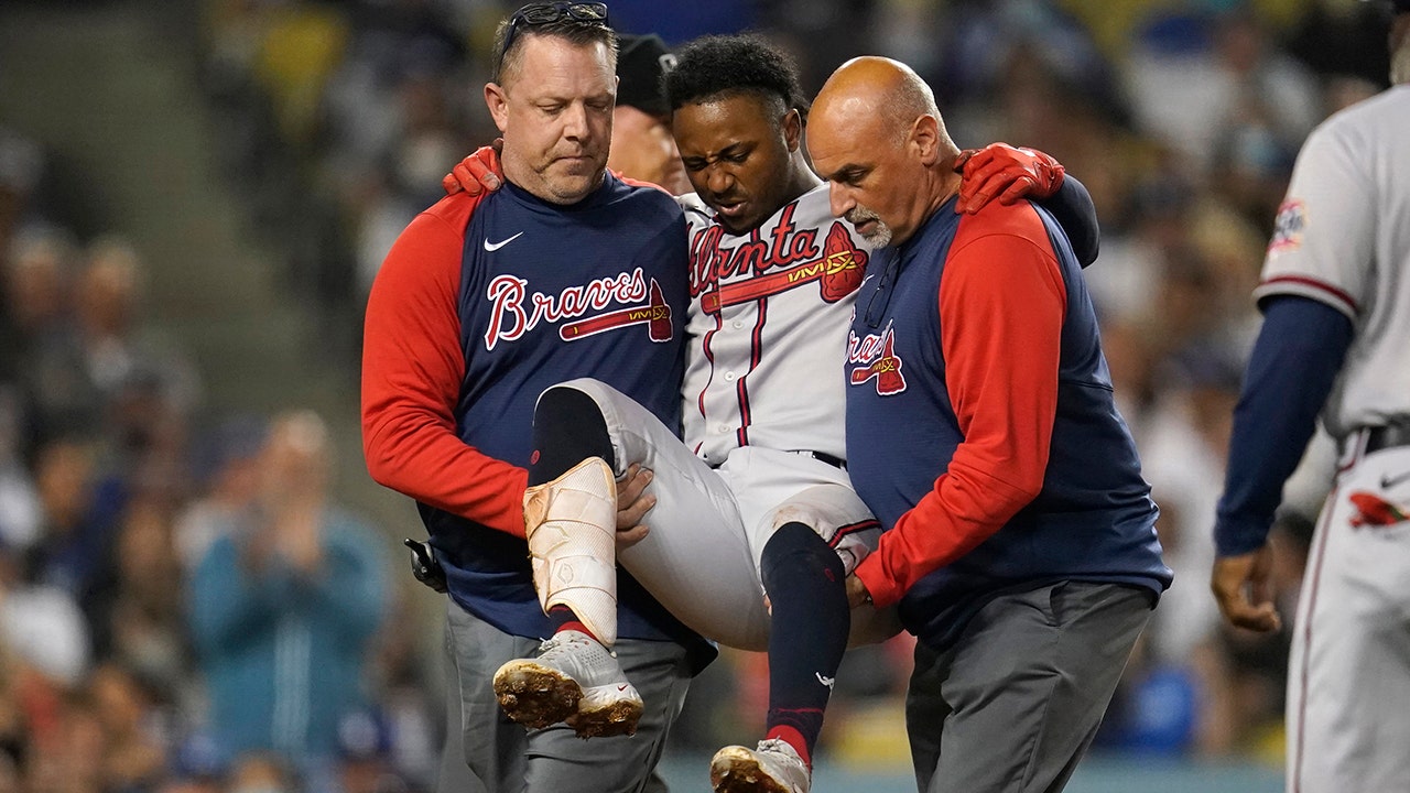 Manager Brian Snitker and a trainer came out to check on Albies, who stayed on the ground. Albies was carried back to the dugout when it became apparent he couldn’t put any weight on his leg.