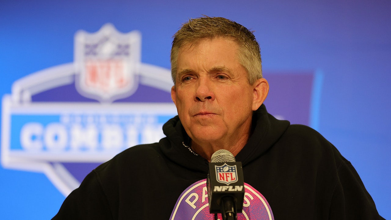 Denver Broncos head coach Sean Payton speaks to the media during the NFL Combine at the Indiana Convention Center on Feb. 27, 2024 in Indianapolis. (Stacy Revere/Getty Images)