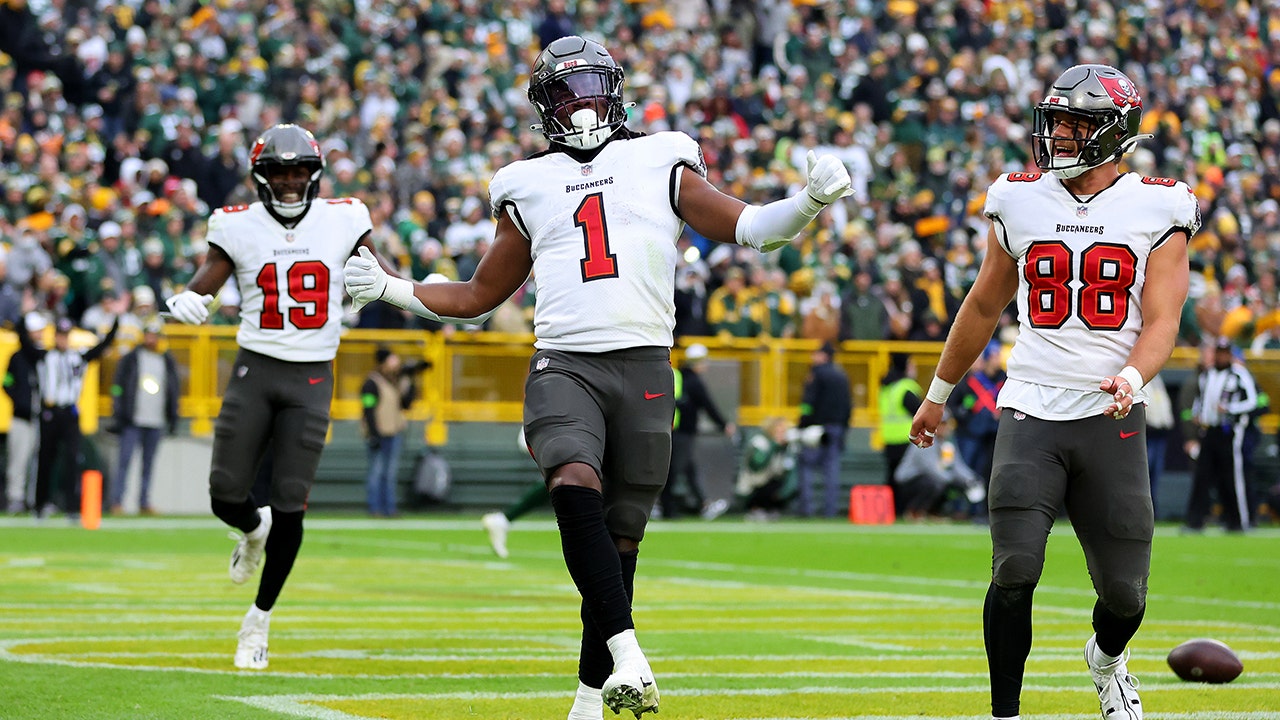But while Packers quarterback Jordan Love had a solid game, going 29 of 39 for 284 yards with two touchdowns, Mayfield was just better with his delivery to seven different receivers, four of whom had a touchdown.