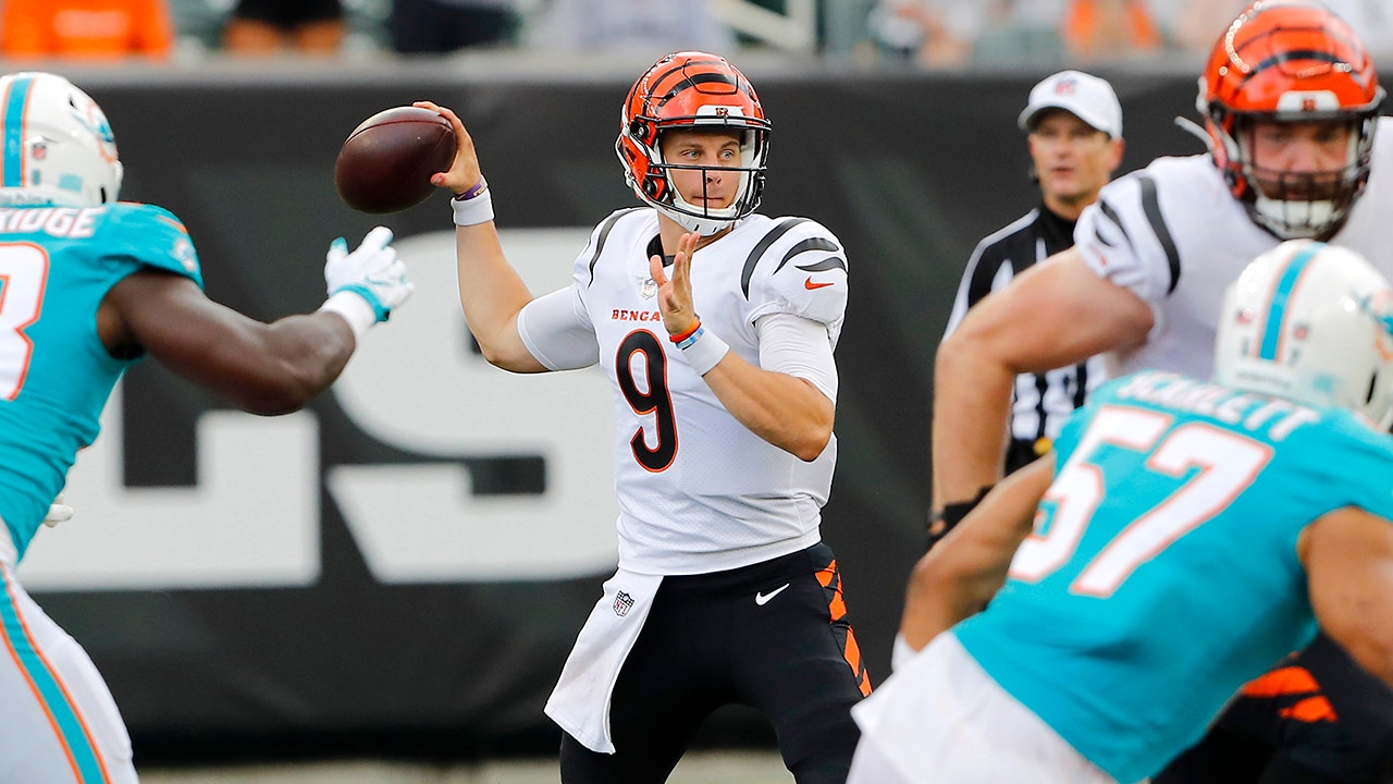 Nine months after tearing both the ACL and MCL in his left knee, Bengals quarterback Joe Burrow took his first snaps Sunday against the Miami Dolphins, who rallied to win 29-26 in a wild preseason finale for both teams.