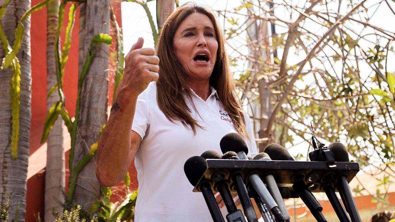 Caitlyn Jenner, an Olympic gold medalist and transgender activist, launches her bid for California governor at Venice Beach in Los Angeles on Aug. 12, 2021. (REUTERS/Aude Guerrucci)