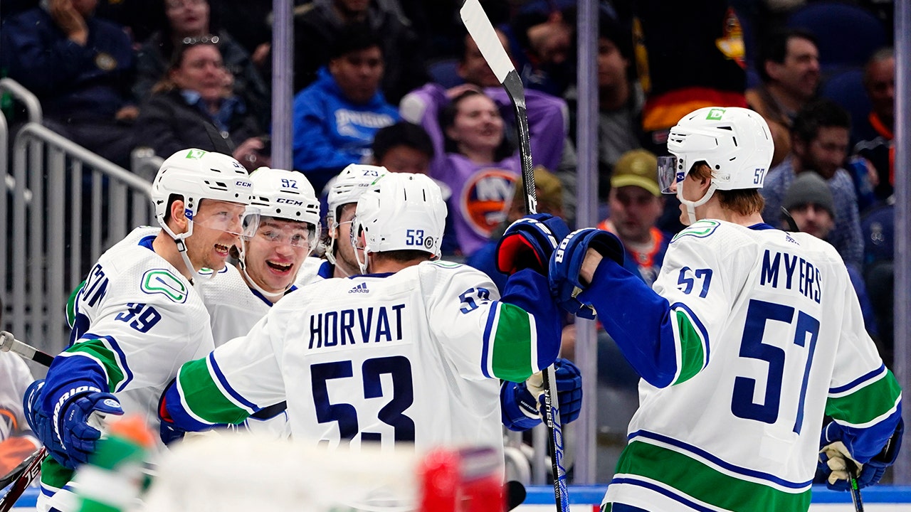 Brad Hunt and J.T. Miller scored second-period goals for Vancouver, while Noah Dobson and Kyle Palmieri scored for the Islanders.