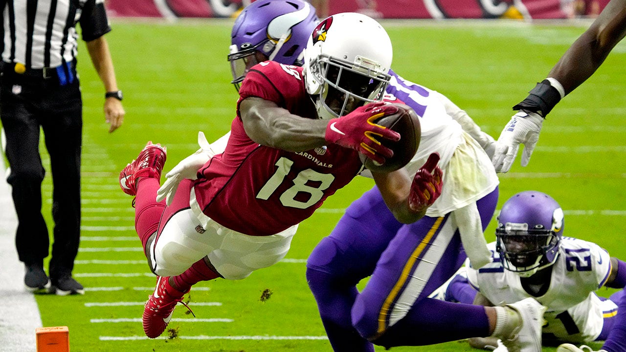 DeAndre Hopkins caught a touchdown pass for the Cardinals. Osborn led the Vikings with 91 yards receiving.