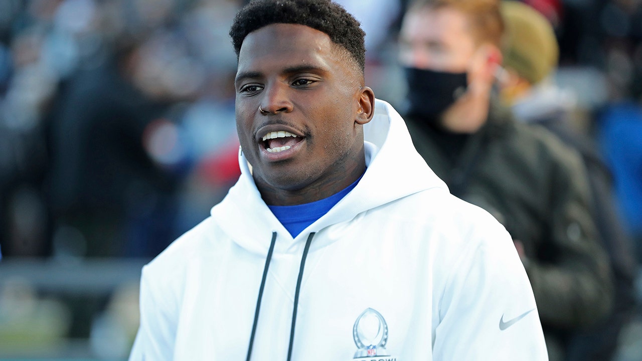 FILE - AFC wide receiver Tyreek Hill, of the Kansas City Chiefs, is seen before competing at the 2022 Pro Bowl Skills Showdown Wednesday, February 2, 2022, in Las Vegas. The Kansas City Chiefs traded wide receiver Tyreek Hill to Miami for a package of draft picks on Wednesday, March 23, 2022, and the Dolphins are giving the three-time All-Pro a $120 million, four-year contract extension, a person familiar with the moves told The Associated Press. (Gregory Payan/AP Images for NFL, FIle)