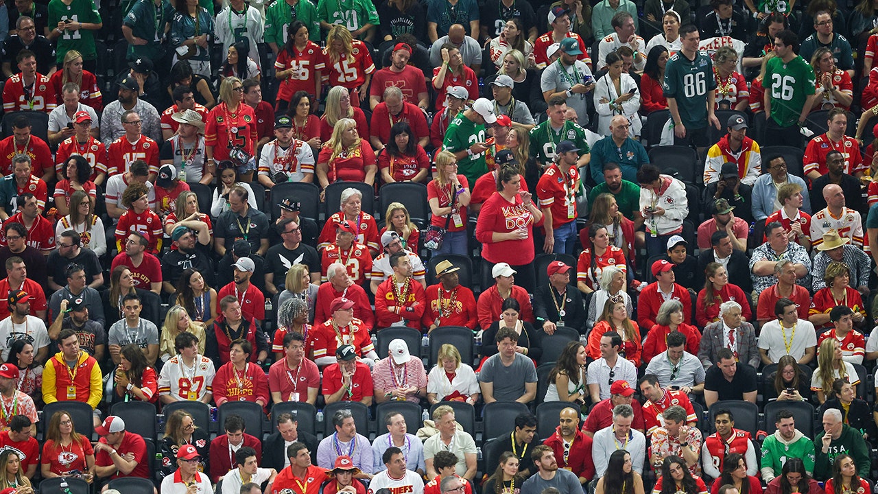 With nearly ten minutes left in NFL football's Super Bowl 59 between the Kansas City Chiefs and the Philadelphia Eagles, many Chiefs fans had already left a watch party at the Power and Light District, Sunday, Feb. 9, 2025, in Kansas City, Mo. (AP Photo/Reed Hoffmann)
