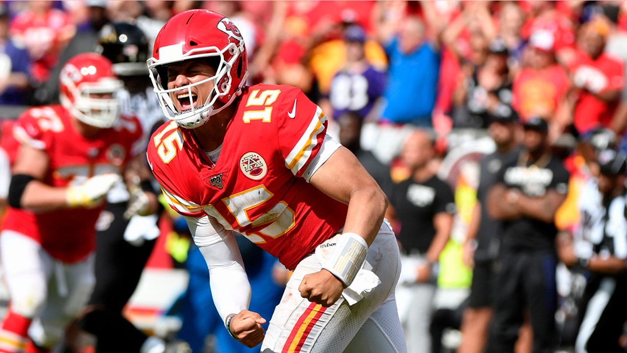 In his first full season as the Chiefs’ starting quarterback, Mahomes passed for 5,097 yards and a league-leading 50 touchdowns. Through three games this season, he leads the league with 1,195 passing yards and 10 touchdowns. He has yet to throw an interception.