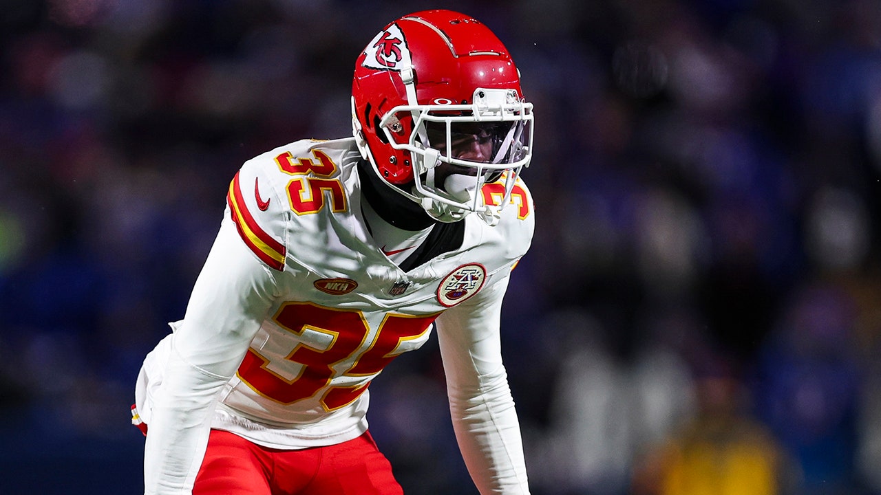 Jaylen Watson of the Kansas City Chiefs lines up during the divisional playoff game against the Buffalo Bills at Highmark Stadium on Jan. 21, 2024, in Orchard Park, New York. (Perry Knotts/Getty Images)