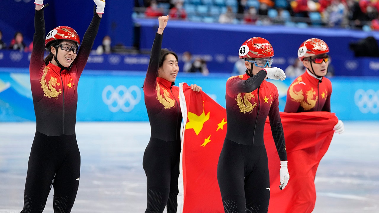 China won its first gold medal of the Beijing Games, emerging victorious Saturday in short track speedskating's mixed team relay in the event’s Olympic debut.