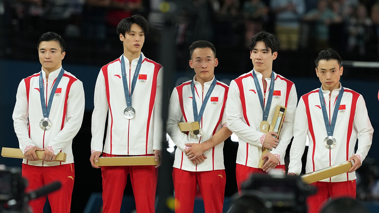 China wins silver in the men’s team final during the Paris 2024 Olympic Summer Games at Bercy Arena in Paris on July 29, 2024. (James Lang-USA Today Sports)